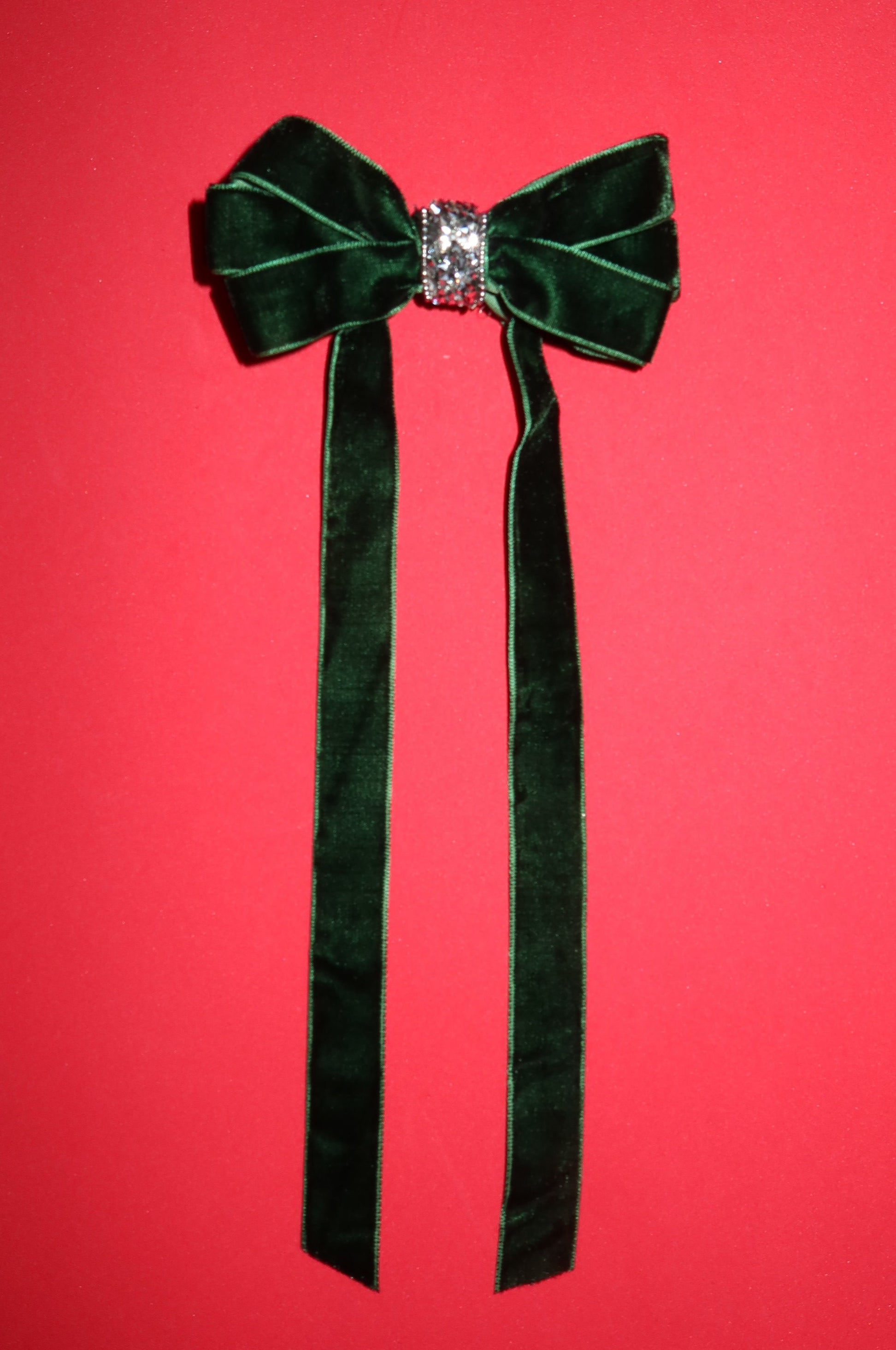 Green velvet thin ribbon, bejeweled ribbon
